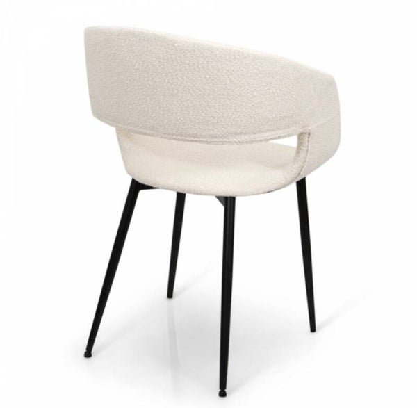 •Chaise de salle à manger disponible en blanche bouclette, gris-brun tissu et taupe tissu .